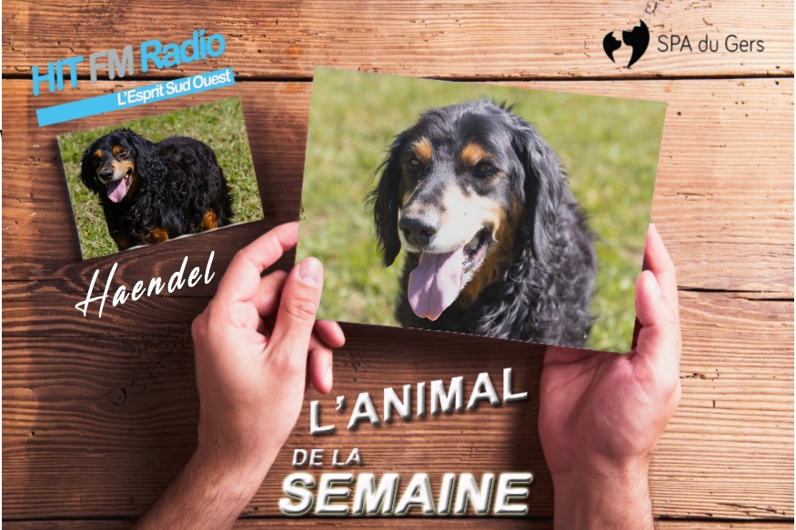 Haendel, c'est le doyen de la SPA du Gers. Agé de 10 ans, il est né d'un croisement avec un setter Gordon. Après une vie paisible, sa maîtresse est brutalement disparue. A la SPA depuis janvier dernier, il est aujourd'hui en quête d'une famille. Haendel saura vous combler par sa gentillesse et ses envies de balade. Il vous attend à Ordan-Larroque, du lundi au samedi de 11h à 12h et de 13h à 17h.