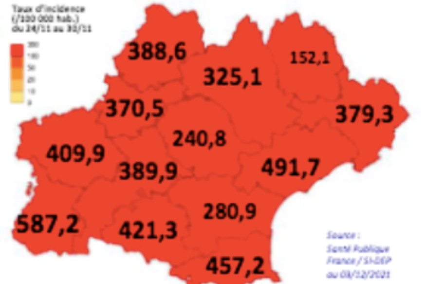 Hospitalisations et cas positifs en hausse, la 5e vague de l'épidémie de COVID-19 qui touche depuis plusieurs semaines le pays n'épargne pas le Gers. Le nombre de nouvelles contaminations explosent ces derniers jours dans le département. Avec un triste record enregistré cette semaine au niveau du taux d'incidence, qui a dépassé les 400 cas positifs pour 100 000 habitants. Il s'agit d'une première historique sur le Gers depuis le début de l'épidémie. Preuve de la dégradation significative de la situation, en l'espace de deux semaines, le taux d'incidence a été multiplié par 4 sur le......