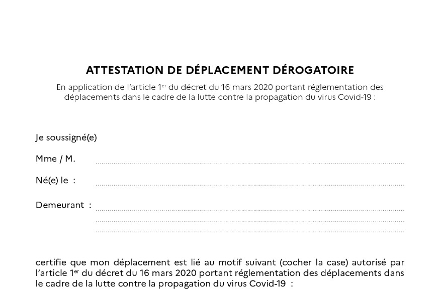 La consigne donnée hier soir, par le ministre de l'Intérieur, Christophe Castaner est clair : "restez chez vous". Les mesures de confinement pour lutter contre la propagation du coronavirus sur l'ensemble du territoire entre en vigeur dès ce midi. Quelques exceptions, seront toutefois tolérés, à condition d'être justifiés. Ainsi pour chaque déplacement, en dehors de certaines cartes professionnelles (cartes de médecin, d'infirmier, de presse) et des attestations d'employeurs, les citoyens français devront présenter "un document attestant sur l'honneur le motif" du déplacement. Un document......