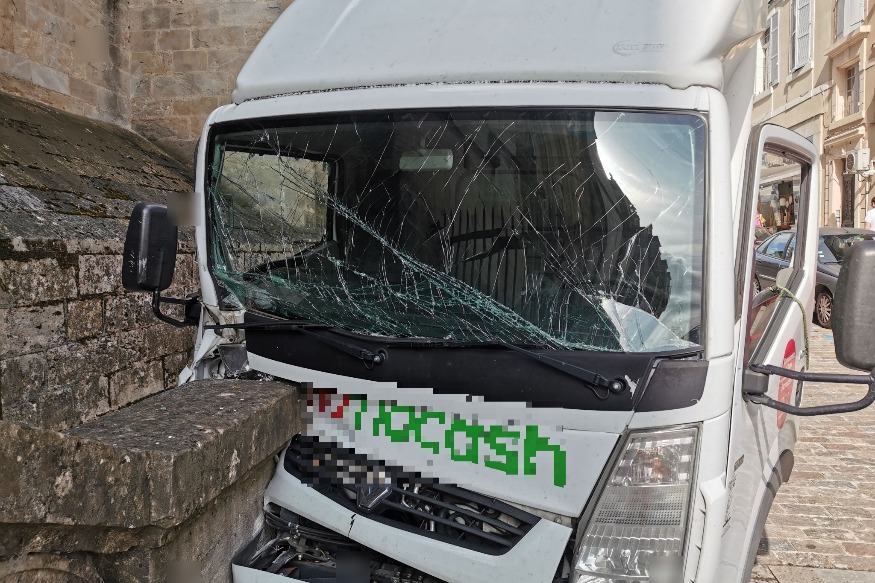 Ce matin vers 9h30, un camion d'une société sépcialisée dans la distribution alimentaire, est venu heurter une moto et un véhicule à proximité de la cathédrale. Le jeune conducteur d'une trentaine d'années ne se trouvait pas dans le véhicule selon ses dires, son camion était en stationnement le temps de la livraison dans un commerce situé à quelques pas. Le véhicule a tapé le mur de l'escalier sur le côté de la cathédrale. Le top case d'une moto a été cassé, un véhicule a également été endommagé. Un constat......