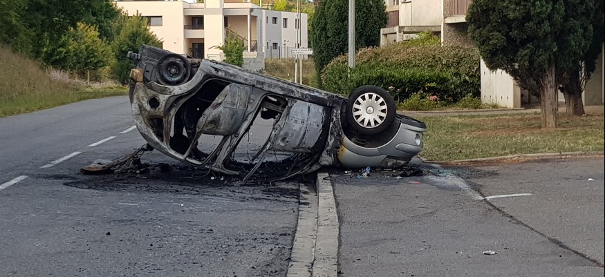 Pendant de longues minutes l'Avenue Jeanne d'Albret était impraticable avec un véhicule renversé qui brûlait au beau milieu de la rue et une quinzaine de jeunes cagoulés qui caillassaient les autres automobilistes.