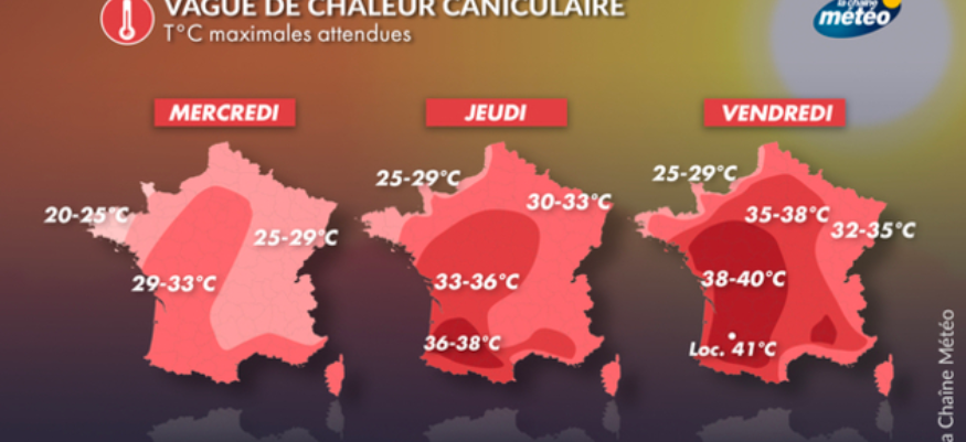 Demain les températures seront souvent déjà supérieures aux normales de saison, c’est jeudi et vendredi que ces dernières deviendront caniculaires.