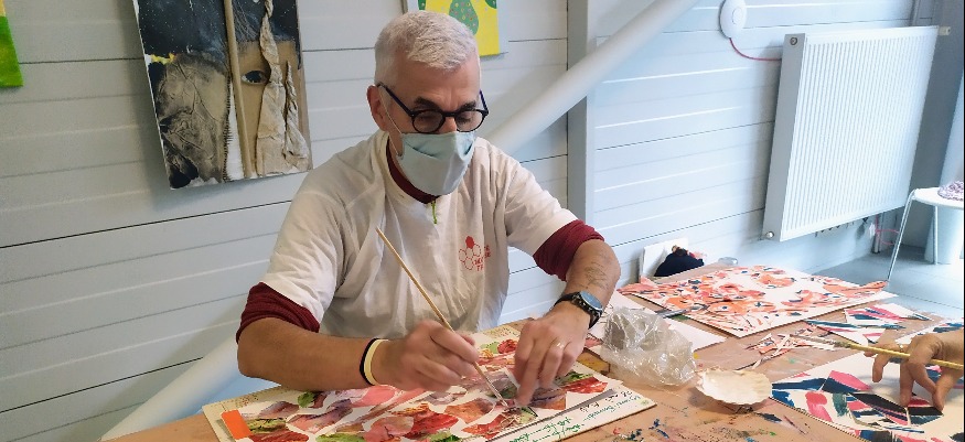 Séance arts plastiques à la ligue contre le cancer.