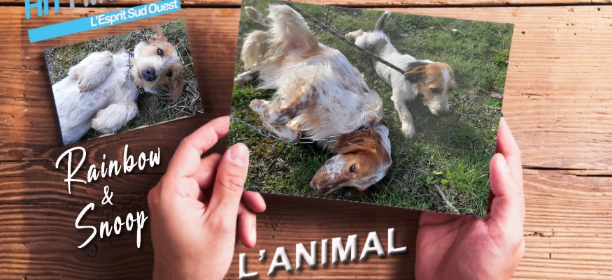 Rainbow et Snoop, deux inséparables arrivés en même temps au refuge de la SPA du Gers. Rainbow est un magnifique croisé Setter de 2 ans et Snoop est un petit chien croisé Fox d'un an. Ce sont deux chiens adorables, qui préfèreraient être adoptés ensemble car ils sont timides tous les deux, et qu'ils sont proches l'un de l'autre. Ils ont besoin de douceur pour faire confiance de nouveau. Ils s'entendent avec leur copain canin. Alors si vous avez envie de faire une bonne action, et la parfaire en les adoptant ensemble, afin qu'ils ne subissent pas de nouveau le sentiment d'être abandonnés, rendez-vous à la SPA du Gers pour cette adoption double