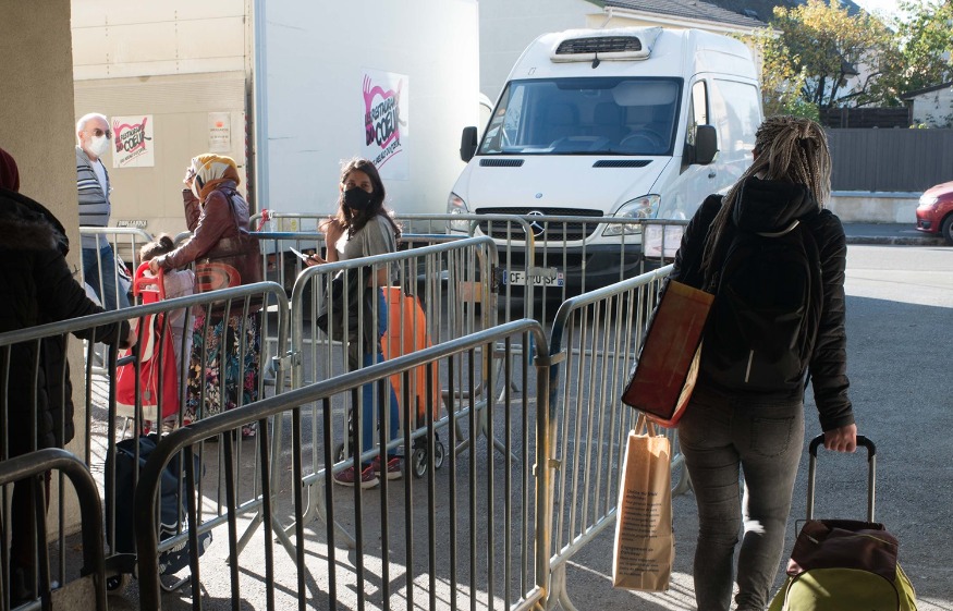 La pandémie nous perturbe sur notre organisation. Nous ne pouvons pas distribuer comme avant. Nous devons mettre en place des drives. Les personnes accueillies ne rentrent plus chez nous. Quand on peut, les bénéficiaires restent dans leurs voitures, et nos bénévoles leurs conduisent directement leurs dotations qui correspond à la composition du foyer. Nous ne pouvons plus trop discuter avec les personnes accueillies, et nous devons faire leurs choix de produits à leur place. C'est quelque chose que nous n'aimons pas trop.