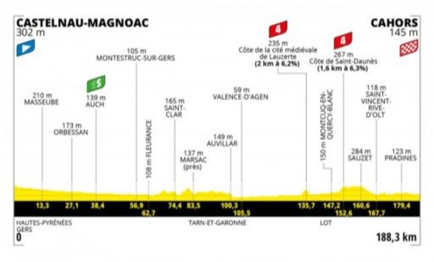 La 19ème étape de la Grande Boucle reliera Castelnau-Magnoac et Cahors sur 188,3 kilomètres