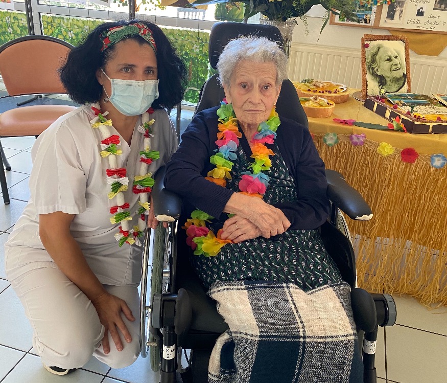 En cette journée internationale pour les personnes âgées c'est un bel exemple de longévité. Odette André née Lafforgue a fêté ses 100 ans en début de semaine. Résidente à l’Unité de soins longue durée la Ribère du Centre hospitalier d'Auch depuis plusieurs mois, cette retraitée clerc de notaire née en Algérie a été spécialement choyée par tout le personnel de l'établissement de santé. qui lui a organisé une belle fête d’anniversaire pour l’occasion. Une décoration sur le thème de Tahiti lui rappelant son plus beau voyage, des gâteaux avec son portrait, des discours, tout a été pensé pour faire de ce jour un moment inoubliable notamment grâce à l’investissement de Céline Billot, animatrice dynamique à l’USLD.