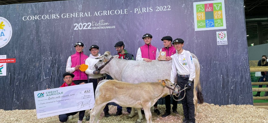 Et une médaille de plus pour le Gers au Salon international de l'agriculture de Paris. Alors que l'événement s'est terminé ce dimanche 6 mars, après près de 9 jours de festivités, le Gers s'est illustré une dernière fois lors du dernier jour du concours général agricole grâce aux lycéens du lycée professionnel agricole de Mirande. Engagés dans le trophée national des lycées agricoles, les six lycéens gersois qui présentaient leur vache mirandaise Haïka, 5 ans et son veau Saïka âgé de 3 mois, ont décroché la deuxième place dans le prestigieux trophée. Une performance saluée par le président du département, Philippe Dupouy.