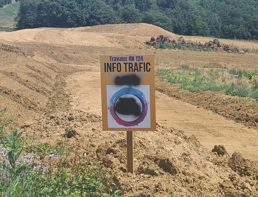 Pour la deuxième fois en quelques jours, les panneaux installés sur la route nationale 124 et destinés à informer les automobilistes sur la fluidité du trafic pendant les travaux ont été dégradés. Une enquête est en cours.