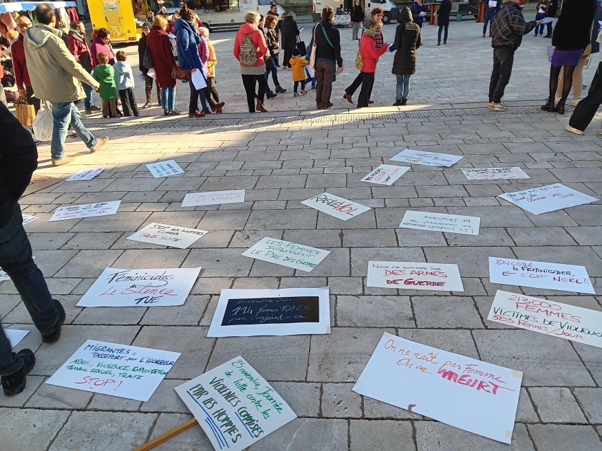 Mobilisation à Auch ce matin dans le cadre de la journée nationale de lutte contre les violences faites aux femmes, à l'initiative du Café féministe.