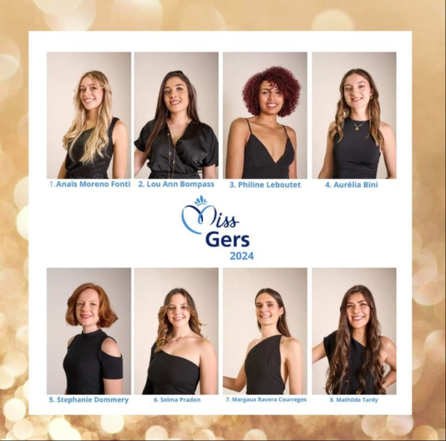 Qui succédera à Nadine Benaboud, Miss Gers 2023 et Miss Midi-Pyrénées ? Le comité Miss Gers vient de dévoiler le nom des candidates sélectionnées pour la finale départementale de l'élection. Elles seront huit cette année à briguer l'écharpe de Miss Gers. L'élection se tiendra le samedi 29 juin prochain au sein de la salle omnisports de Lectoure. La billeterie pour assister à l'événement vient de s'ouvrir. Découvrez le visage des huit candidates en lice pour le titre de Miss Gers 2024 :