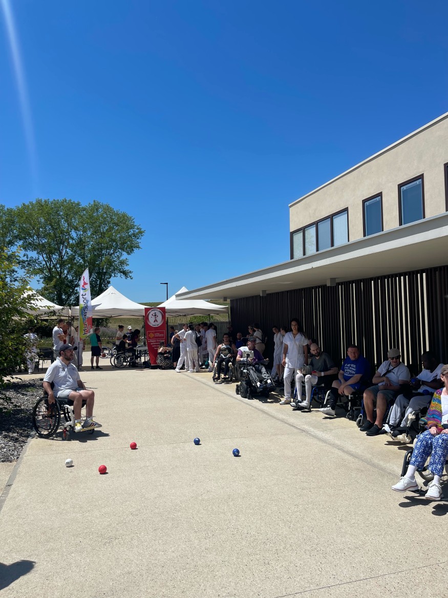 Clément Laffitte, qui anime la boccia – cette pétanque handisport « pour les plus handicapés d'entre nous, parce que je me mets dans le wagon » – n'en démord pas ; accéder à la pratique sportive dans un premier temps, créer des vocations dans un second. On touche peut-être ici du doigt la différence entre pratique physique et sport, là où le rapport au corps rencontre le rapport à la compétition. Dans une logique de retour aux sensations et, dans la mesure du possible, à l'usage de membres perdus, la quête de résultats et de records est-elle vraiment prioritaire ? « A tout moment dans leur rééducation ils sont dans la recherche de la performance » tranche Xavier, un des kinésithérapeute du centre. « Un patient qui commence à se mettre debout veut toujours marcher. C'est là qu'on essaye de les amener, au maximum de leurs capacités ». Les parallèles existent plus qu'on ne pourrait le croire entre le sport de haut-niveau, sa quête d'excellence permanente, son staff aux allures d'armada, et l'autre extremité du spectre, sa quête de dépassement quotidienne, son « équipe pluridisciplinaire avec des neuropsychologues, ergothérapeutes, ortophonistes. Tous ces maillons de la chaîne qui participent à la progression du patient » détaille Emilie, infirmière.