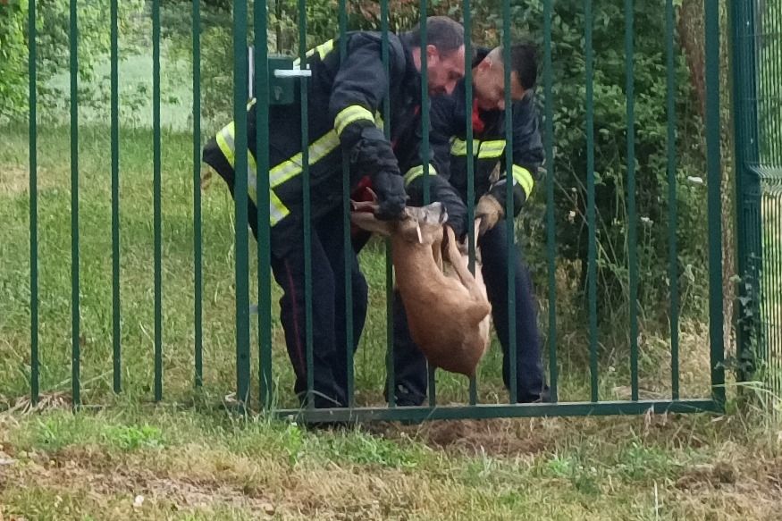 Auch : les pompiers sauvent un chevreuil dont la tête s'était coincée dans un portail du lycée Beaulieu