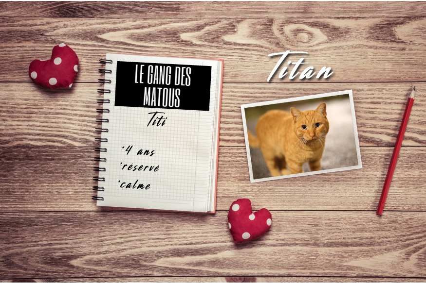 Titi, de son vrai nom Titan est estimé à 4 ans minimum. Après plus d'un an et demi de socialisation, peut-être à force de patience et de curiosité de sa part, il a commencé à se laisser approcher. Plutôt réservé et très calme, il a besoin de prendre le temps avant d'accorder sa confiance. Il ne se laisse pas facilement approcher mais n'est jamais bien loin afin de toujours nous observer. Il apprécie particulièrement dormir sur le lit et attendra tous les soirs, que vous veniez vous coucher afin de jouer avec vos pieds. C'est son petit moment de folie ! Mais une fois que la partie est......