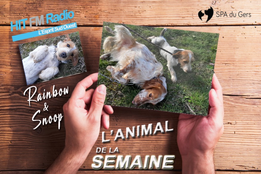 Rainbow et Snoop, deux inséparables arrivés en même temps au refuge de la SPA du Gers. Rainbow est un magnifique croisé Setter de 2 ans et Snoop est un petit chien croisé Fox d'un an. Ce sont deux chiens adorables, qui préfèreraient être adoptés ensemble car ils sont timides tous les deux, et qu'ils sont proches l'un de l'autre. Ils ont besoin de douceur pour faire confiance de nouveau. Ils s'entendent avec leur copain canin. Alors si vous avez envie de faire une bonne action, et la parfaire en les adoptant ensemble, afin qu'ils ne subissent pas de nouveau le sentiment d'être abandonnés, rendez-vous à la SPA du......