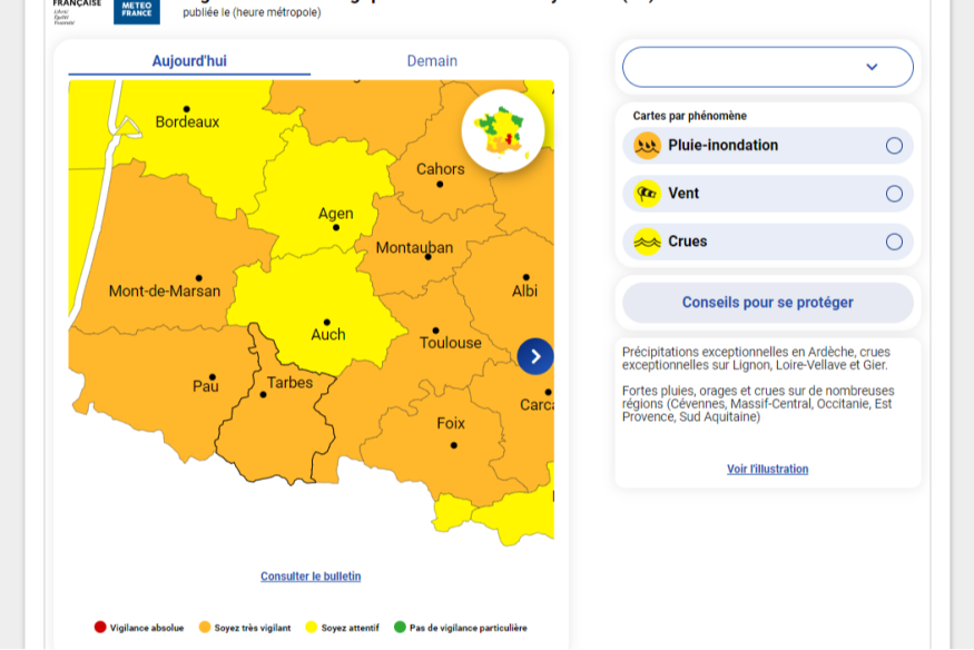 Viligance météo : des départements du sud ouest en alerte orange pluie inondation
