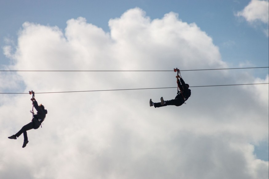 Ce sont des tyroliennes uniques de type structure artificielle. Il en existe des longues comme ça en flanc de montagne, mais pas en structure artificielle. Les tyroliennes font 600 mètres de long et 40 mètres de haut.