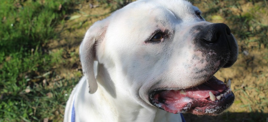 Dogo est un male croisé Dogue-Argentin de 4 ans. C’est un chien dont les services de la SPA ne connaissent pas le passé. Cependant, à travers les balades et les moments passés avec lui, "nous avons pu voir qu’il est très affectueux". "Il adore qu’on lui gratte le ventre, reste câlin et joueur". C’est un chien qui n’a pas conscience de se force, donc les enfants en bas âge sont à éviter. Il ne tire pas en laisse. Quant à ses ententes avec ses congénères, elles sont à tester.